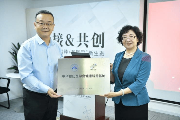 會上,中華預防醫學會副會長梁曉峰代表學會宣讀了《關于同意深圳三代人科技有限公司作為中華預防醫學會健康科普基地的函》。中華預防醫學會副秘書長張伶俐向三代人科技董事長助理、副總經理李黎授予“中華預防醫學會健康科普基地”牌匾。